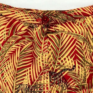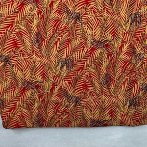 Vibrant red and yellow tropical print skirt with palm leaf design