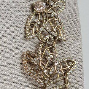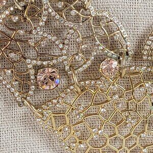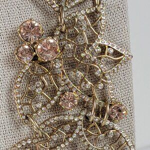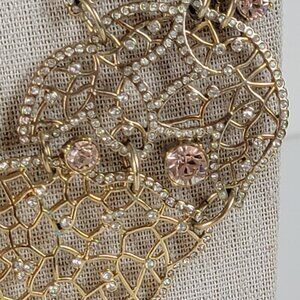 Vtg. Ann Taylor Clear And Pink Crystal Gold-Tone Metal Lace Bib Necklace 18.5 In