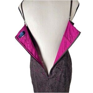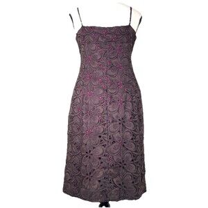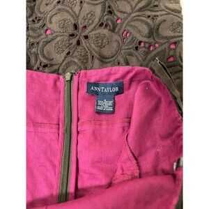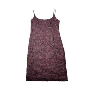 Vtg Ann Taylor Sleeveless Brown Y2K Eyelet Dress Empire Waist Magenta Lined Sz 6