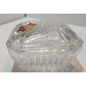 This vintage trinket dish by Anna Hutte Bleikristall is a beautiful addition to any collection. The dish features a stunning heart pattern in clear crystal and is produced in a unique octagonal shape. The lid adds an extra touch of elegance and the art deco style is sure to impress.