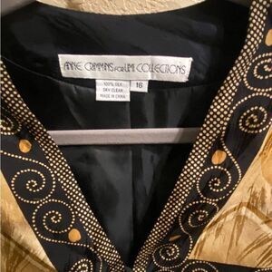 Anne Crimmins for UMI Collections Silk Jacket Blazer Sz 16 Animal Print Baroque Gold Shoulder Pads