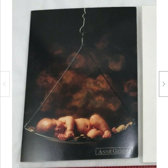 Vtg Anne Geddes Baby Photo Blank Greeting Card Hanging Coin Scale 1995
