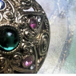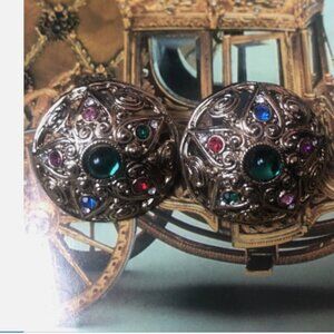 Vtg Anne Klein Gripoix multicolor Cabochon glass designer runway Clip Earrings