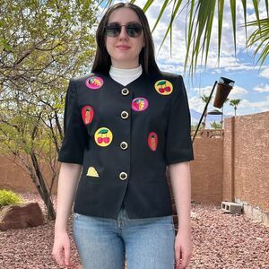 Vtg Anotonette Franz Haushofer Womens Sz 36 Small Fruit Button-Up Blouse Germany