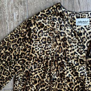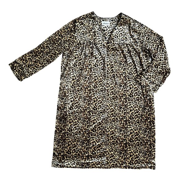 Vtg Anthony Richards Animal Print Velour Zip Front Robe Housecoat Nightgown