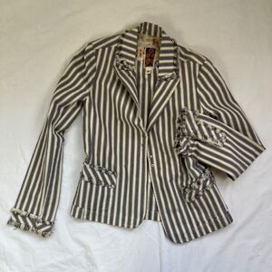 Vtg Anthropologie Burning Torch Blazer S Grey White Striped Jacket Cotton Y2K
