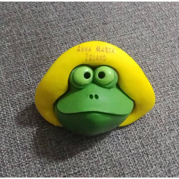 Vtg Anthropomorphic Frog Yellow Rain Hat Magnet Rubber 3D Clay Critters 3"