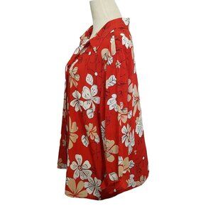 Vtg Apparenza Women's Top Shirt 2X Button Front Red floral 3/4 Cuffed Sleeve