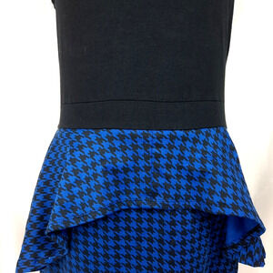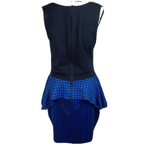 Vtg Apple Bottoms Y2K Cut Out Peplum Pencil Dress Large Blue Black Houndstooth