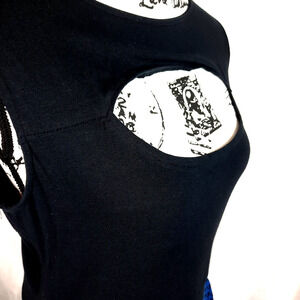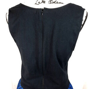 Vtg Apple Bottoms Y2K Cut Out Peplum Pencil Dress Women Large Blue Black Houndstooth Retro Sexy Bodycon Goth. Pre-owned in Good Condition; has a couple light marks on the skirt.