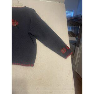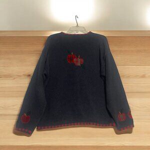 Vtg Apple Cardigan Sweater Size L Grannycore Folk Art Knit Teacher Mandal Bay. Has some wear. Areas are lighter.