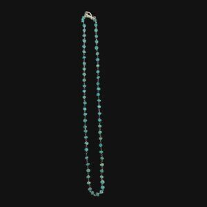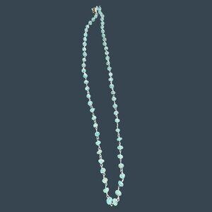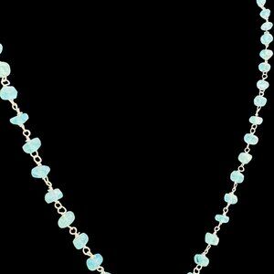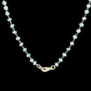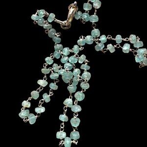 This aquamarine necklace embodies timeless elegance, showcasing natural gemstones linked by sterling silver. Its delicate craftsmanship reflects vintage charm, adding subtle sophistication to any attire.