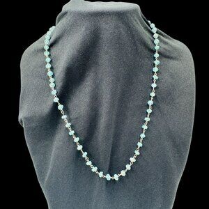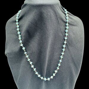 Vtg Aquamarine Gemstone Necklace Sterling Silver Chain & Lobster Clasp Boho
