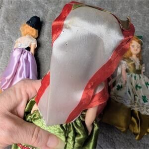 This is a vintage set of four 1960s Arco Dolls of the World. Each doll is 8 inches in size with sleepy eyes and represents different countries such as Sweden, Italy, Jamaica, and Ireland. The dolls are made of plastic and are part of the Fashion Doll product line. They come without packaging and are original pieces from the 1960s. NOTE: NO ORIGINAL BOXES, CLOTHING HAS SOME DISCOLORING/ WRINKLED/SOME RIBBONS HAVE TEARS/HOLES, ALL ARE COMPLETE WITH REMOVABLE SHOES/SLEEPY EYES THAT WORK, SEE ALL PICS FOR DETAILS, GOOD/FAIR CONDITION FOR AGE.