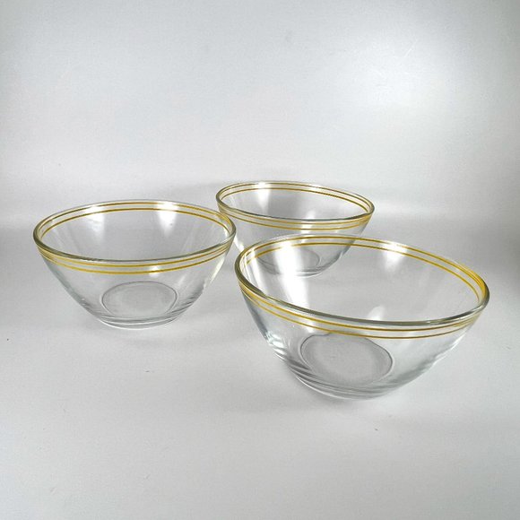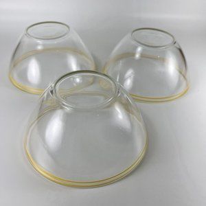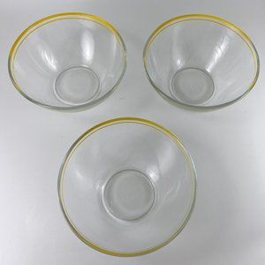 Vtg Arcoroc France Bowls Cereal Salad Soup Clear Glass Yellow Stripes Lot of 3
