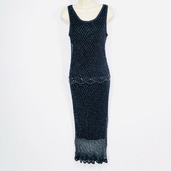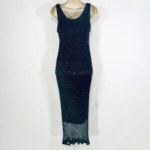 Vtg Arden B Beaded Crochet Fishnet Top & Skirt Sz M Dark Fairy Glam Goth