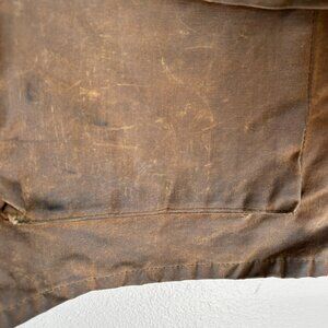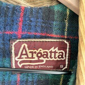 Vintage Argatta England mens size small wax cloth chore jacket with plaid wool lining and corduroy collar.