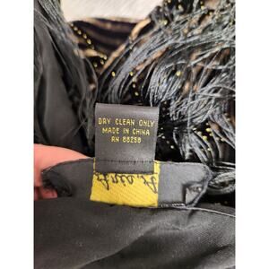 Vtg Aris A Piano Fringe Velvet Burnout Dramatic Open Jacket Black & Amber OS
