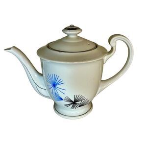 Vtg Arita MCM Teapot W/ Pinecones, Blue & Black Atomic Stars Hand Painted Japan