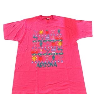 Vtg Arizona Pink Puff Print Cactus ‘91 Albatross Single Stitch USA T-Shirt XL