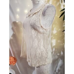 Vtg Arizona Sheer Lace Peter Pan Collar Sleeveless Top Size L Cream Coquette Y2K