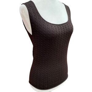 Vtg Armani Collezioni cable knit 99% virgin wool Sweater Vest Chocolate Brown Sz 8
