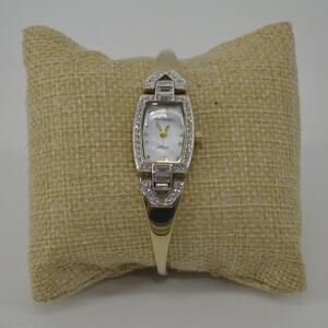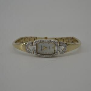 Vintage Armitron Now Gold Tone Wristwatch Rhine Stone White Face