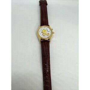 Vtg Armitron Women Tweety Looney Leather Musical Quartz Watch 6 1/2"