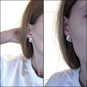 Vtg Art Deco Breakfast At Tiffanys Silver Diamond Costume Earrings RMN Roman Co.
