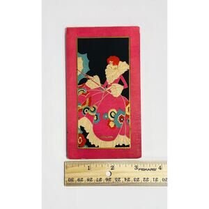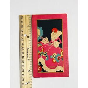 Vtg Art Deco Bridge Score Pad Booklet Lady Pink Dress with Umbrella 1920s-30s