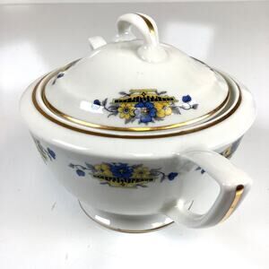 Vtg Art Deco Pattern Sugar Bowl with Lid Made in USA Porcelain China. Very good condition. Measures approximately 7 inches wide by 4.5 inches in diameter by 4.5 inches high. Please see all photos.