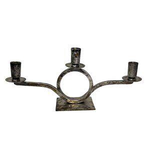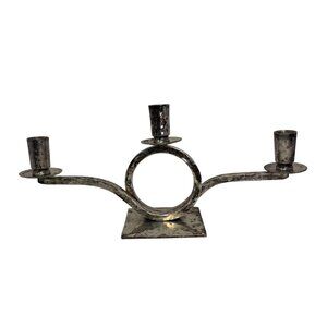 Vtg Art Deco Silver Plated Candelabra Mid Century Hammered Silver Candle Holder