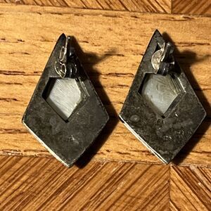These vintage Art Deco sterling silver earrings feature marcasite stones and mother of pearl detailing, giving them an elegant and timeless appeal. The diamond shape design and silver color add a touch of classic sophistication, perfect for those who appreciate retro and chic jewelry pieces. These piercings are ideal for those looking for a unique and stylish addition to their collection, with the fine craftsmanship and quality of the brand Estate ensuring a durable and stunning accessory.