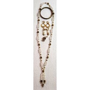 Vtg Art Neoveau Inspired Beaded Fringe Necklace Clip Earrings Bangle Bracelet.