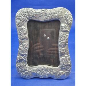 Vtg Arte Giancarlo Honduras Pewter Picture Frame Floral Design Wood Back 9x7"