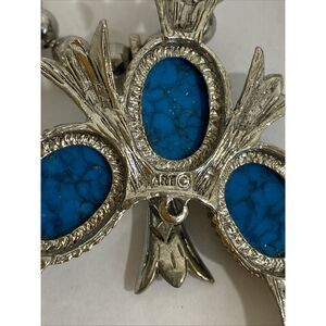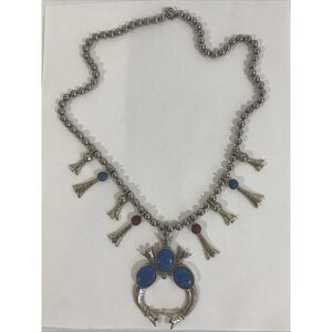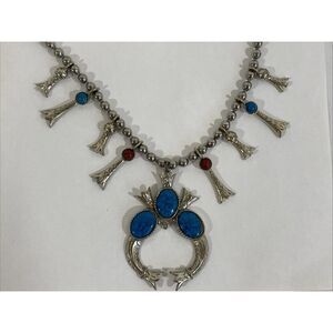 Vtg Arthur Pepper Faux Southwestern Squash Blossom Necklace Silver Turquoise