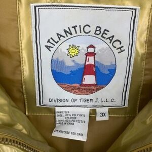 Vtg Atlantic Beach Plus Sz 3X Gold Metallic Vinyl Shiny PVC Raincoat Zip Lined