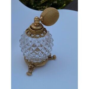 Vtg Atomizer Perfume Bottle Ormolu Gold tone vanity Clear Diamond Pattern