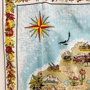 Vtg Australia Wall Hanging Linen Table Cloth Map Large 54" x 51" Kangaroo Floral