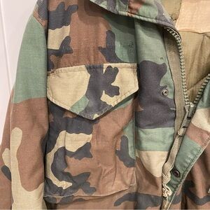 Vtg Authentic US Army Camo Military Cold Weather Field Canvas Jacket