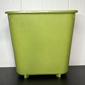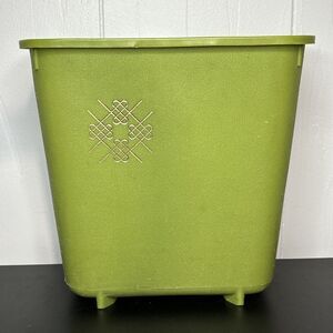 Vtg Avocado Green Waste Basket Footed Trash Silver Textured Max Klein MCM