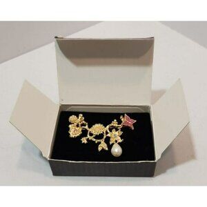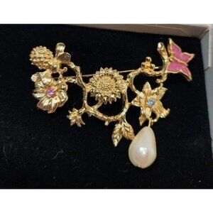 Vtg Avon 1994 Garden of Eden Pin/Brooch Goldtone with Pink & White Colors NIB