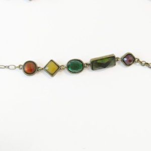 Vtg Avon Antique Gold Tone Multi Color Shape Bezel Set Station Necklace 34"