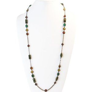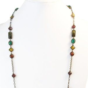 Vintage 80s Avon NR Antique Gold Tone Multi Color Multi Shape Bezel Set Station Necklace 34”