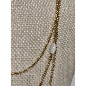 Vtg Avon Multi Chain Layered Necklace Elongated Beads Dainty Minimal Gold Toned