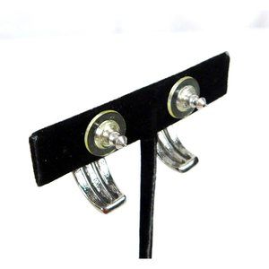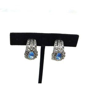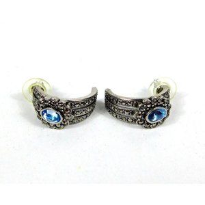 Vtg Avon Romantic Treasures Faux Marcasite Blue Stone Half Hoop Pierced Earrings