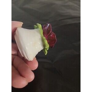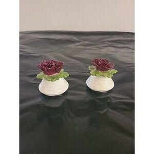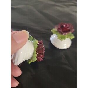 This vintage Aynsley fine bone china salt and pepper set is a rare find in a beautiful burgundy color with a floral pattern. The set includes a pepper shaker and a salt shaker, both in the shape of flowers. These antique salt and pepper shakers are perfect for all occasions and are made of lightweight, water-resistant bone material. The country-style shakers are original and feature a hand wash only cleaning requirement, making them a unique addition to any collectibles or kitchen decor.