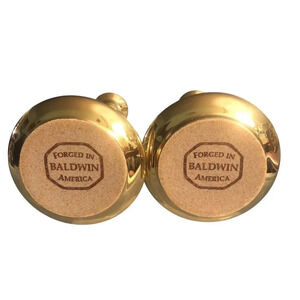 Vtg BALDWIN BRASS 7" Pair Candle Holders Candlesticks Round Base Forged in USA