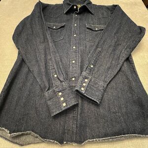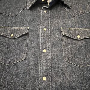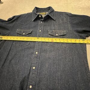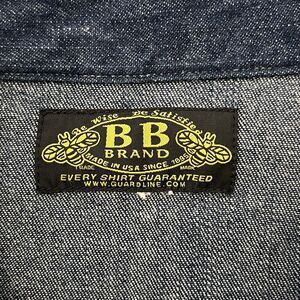 Vtg BB Brand Shirt Mens Pearl Snap Dark Denim Long Sleeve XLarge New Orleans USA