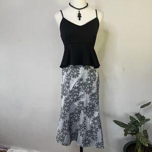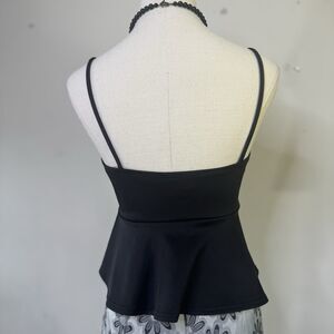 Vtg BEBE 2B Black Peplum Crop Cami Tank Made in USA Fairy Flare Indie Goth Y2K S
